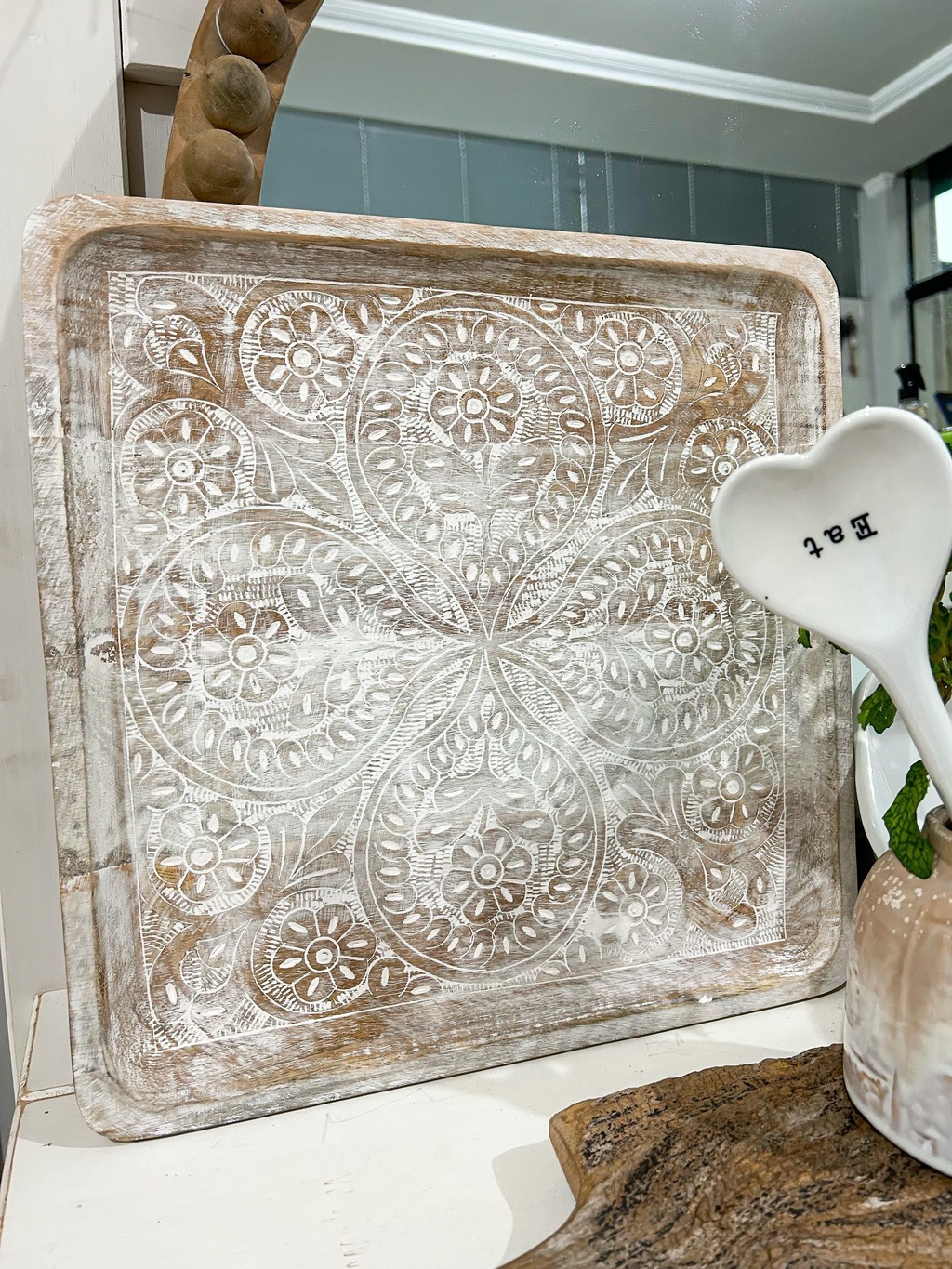 Com entalhes delicados que remetem às rendas antigas, a Bandeja Rendada é puro encanto. Feita em madeira com acabamento patinado, ela traz aquele ar romântico, levemente provençal e cheio de aconchego. Uma peça que transforma qualquer cantinho — seja para apoiar objetos decorativos, organizar perfumes, servir com charme ou simplesmente decorar. O toque rústico e, ao mesmo tempo, elegante, faz dela um verdadeiro convite para quem ama os detalhes que aquecem a casa e a alma.