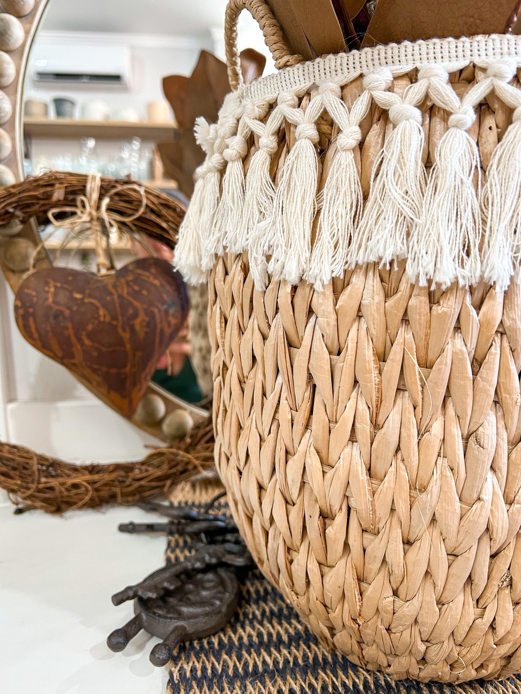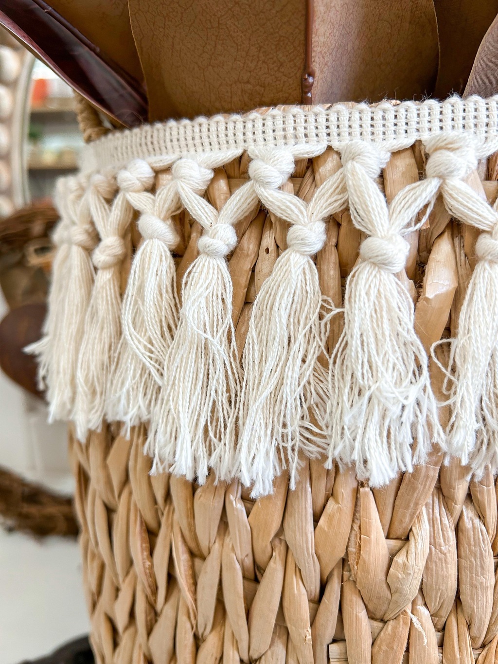 O Cesto Boho Bella é a peça perfeita para quem busca um toque artesanal e sofisticado na decoração. Feito em fibra natural trançada, com estrutura interna em metal e adornado com delicados detalhes em macramê, ele traz charme e aconchego para qualquer ambiente. Ideal para acomodar plantas, mantas ou até mesmo como item decorativo, adicionando um ar boho chic ao seu lar.