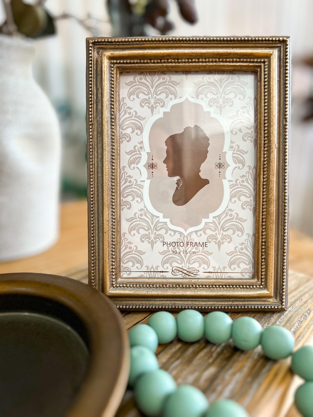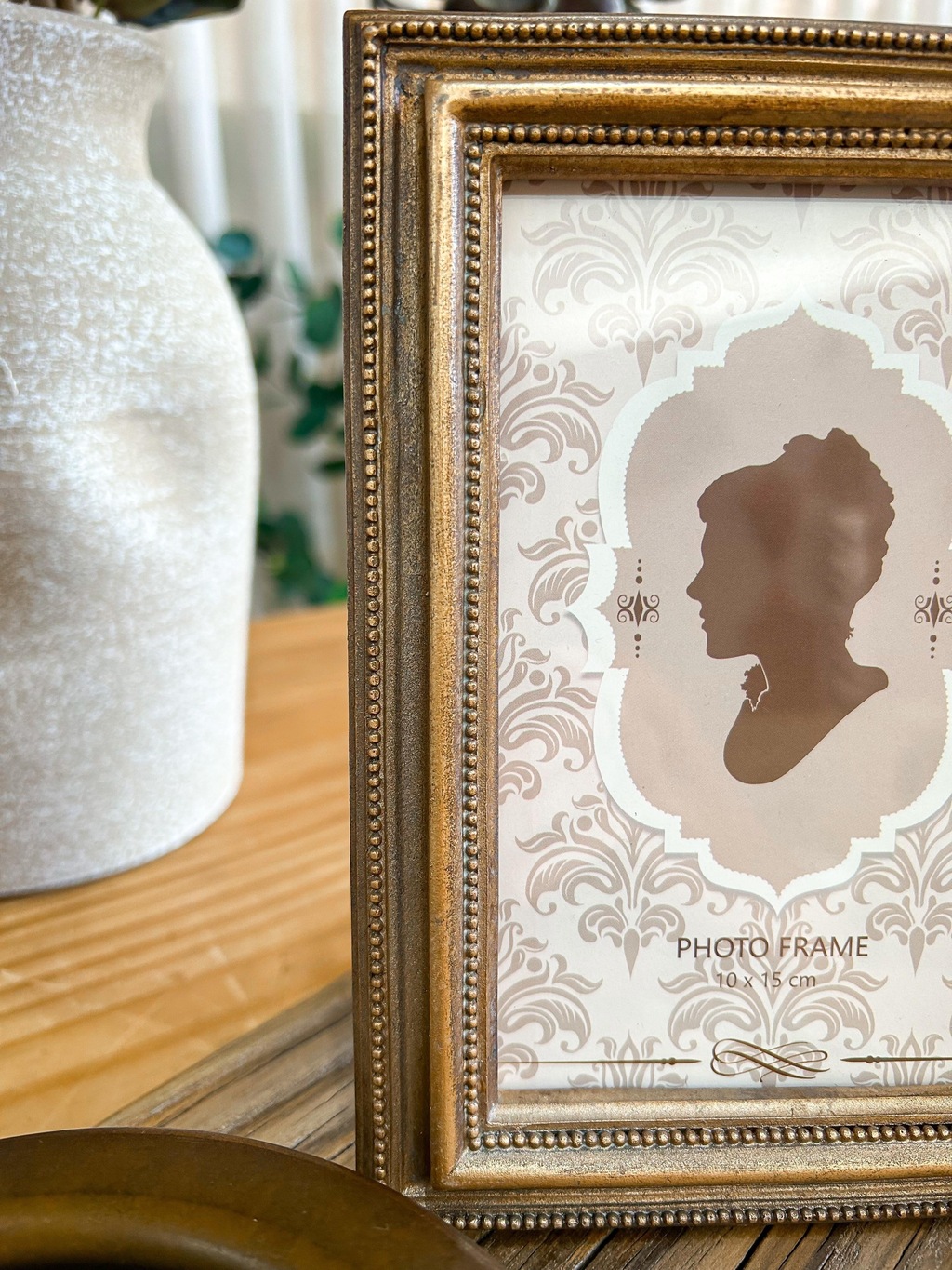 Feito em resina, com acabamento envelhecido e detalhes em relevo, o porta-retrato Windsor é como uma pequena obra de arte que guarda lembranças com charme e sofisticação. Sua moldura dourada com textura clássica traz uma atmosfera atemporal, perfeita para compor aparadores, mesas laterais ou prateleiras com um toque de história e afeto. Para fotos no tamanho 10x15cm.